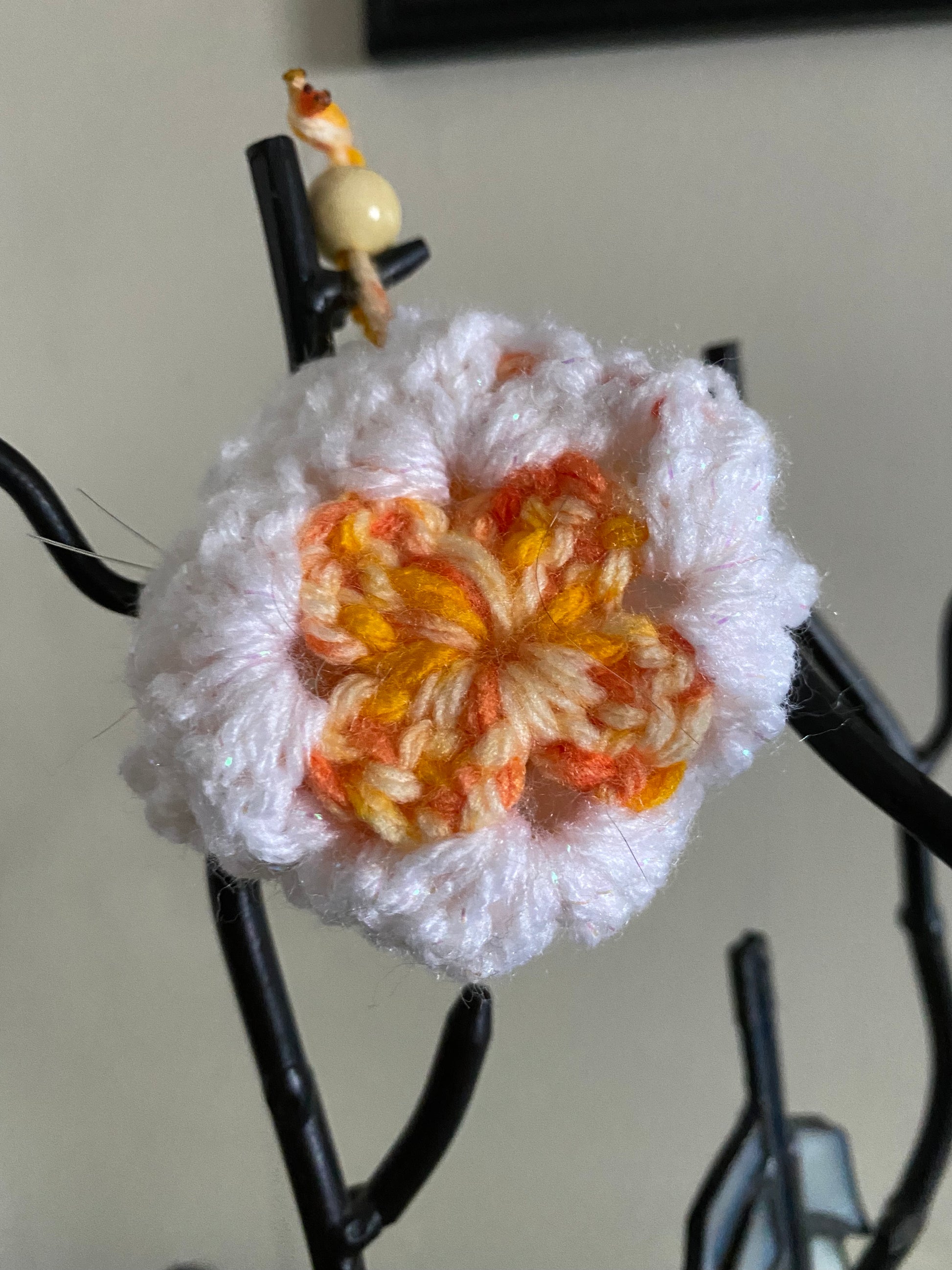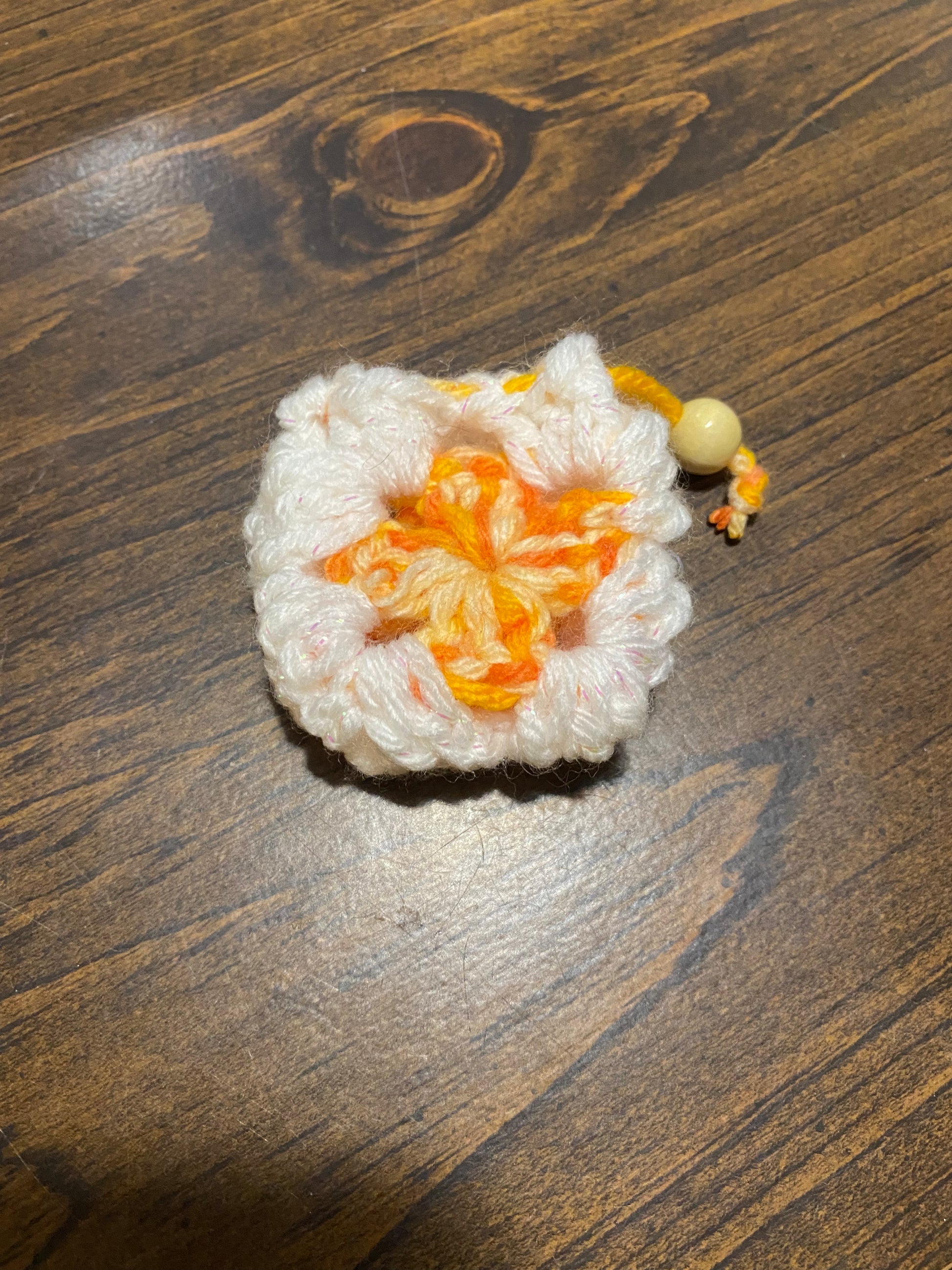 This “mini” granny square, crochet, crystal pouch is great for carrying a few small tumbles/raw stones or a small/medium stone. The bags are drawstring style with wooden beads at the ends to hold them shut.