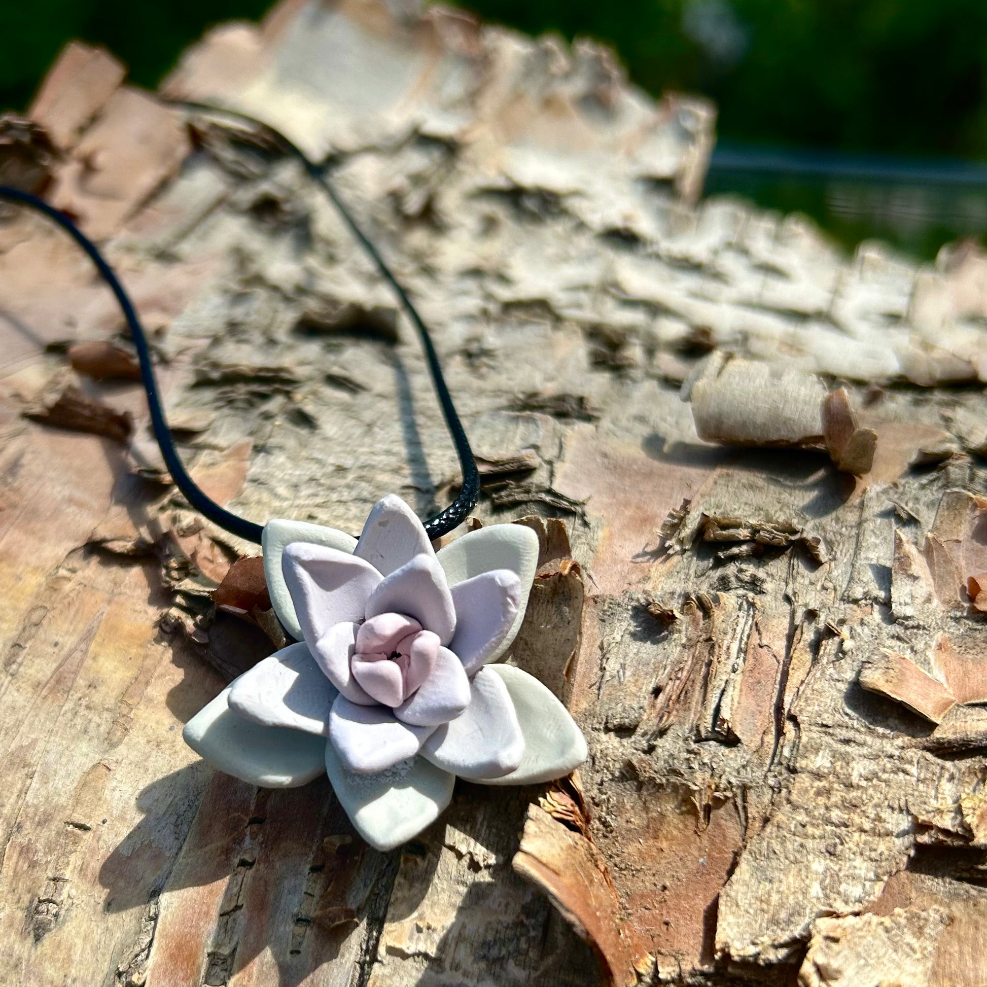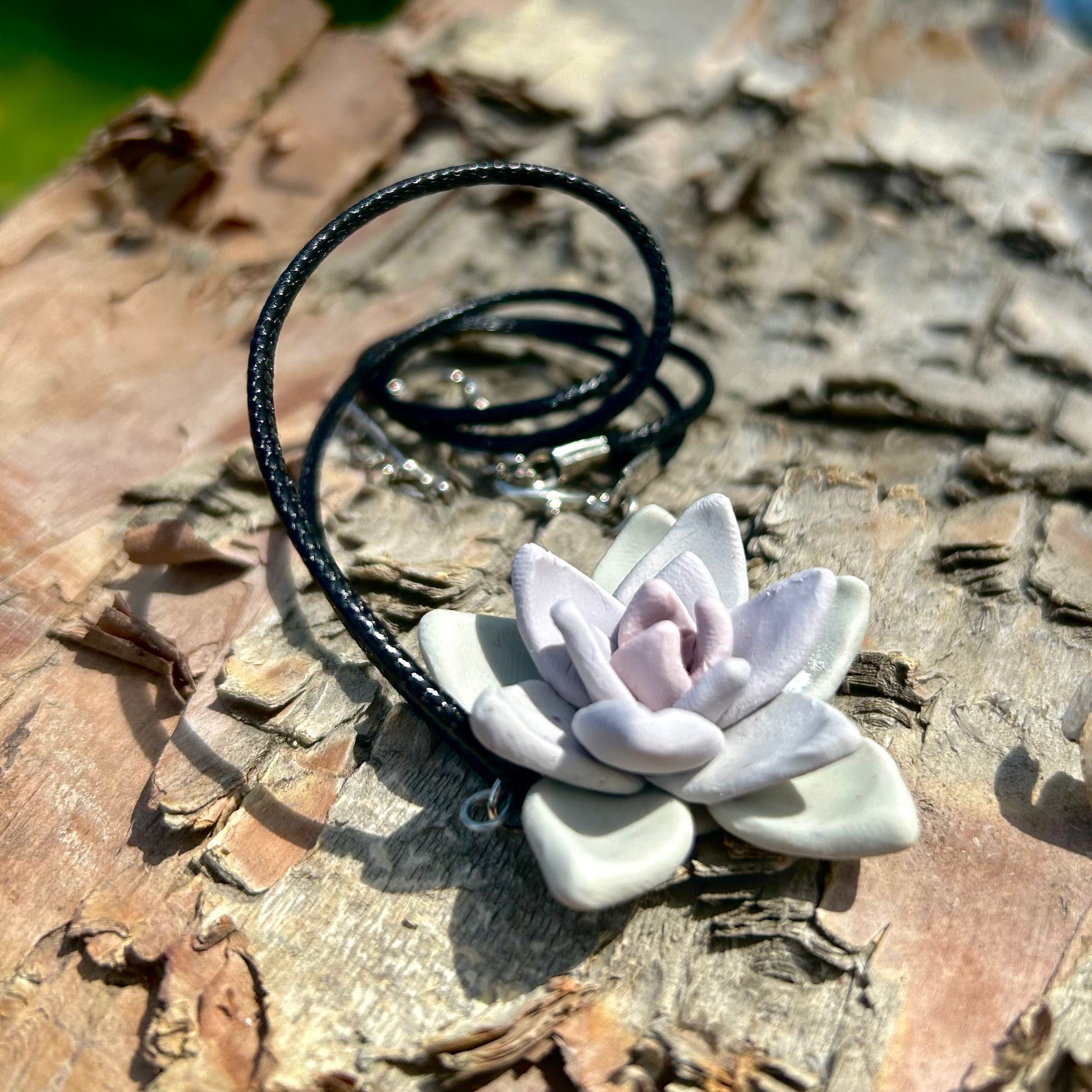 This one of a kind pendant is hand-crafted from polymer clay, inspired by echeveria succulents.