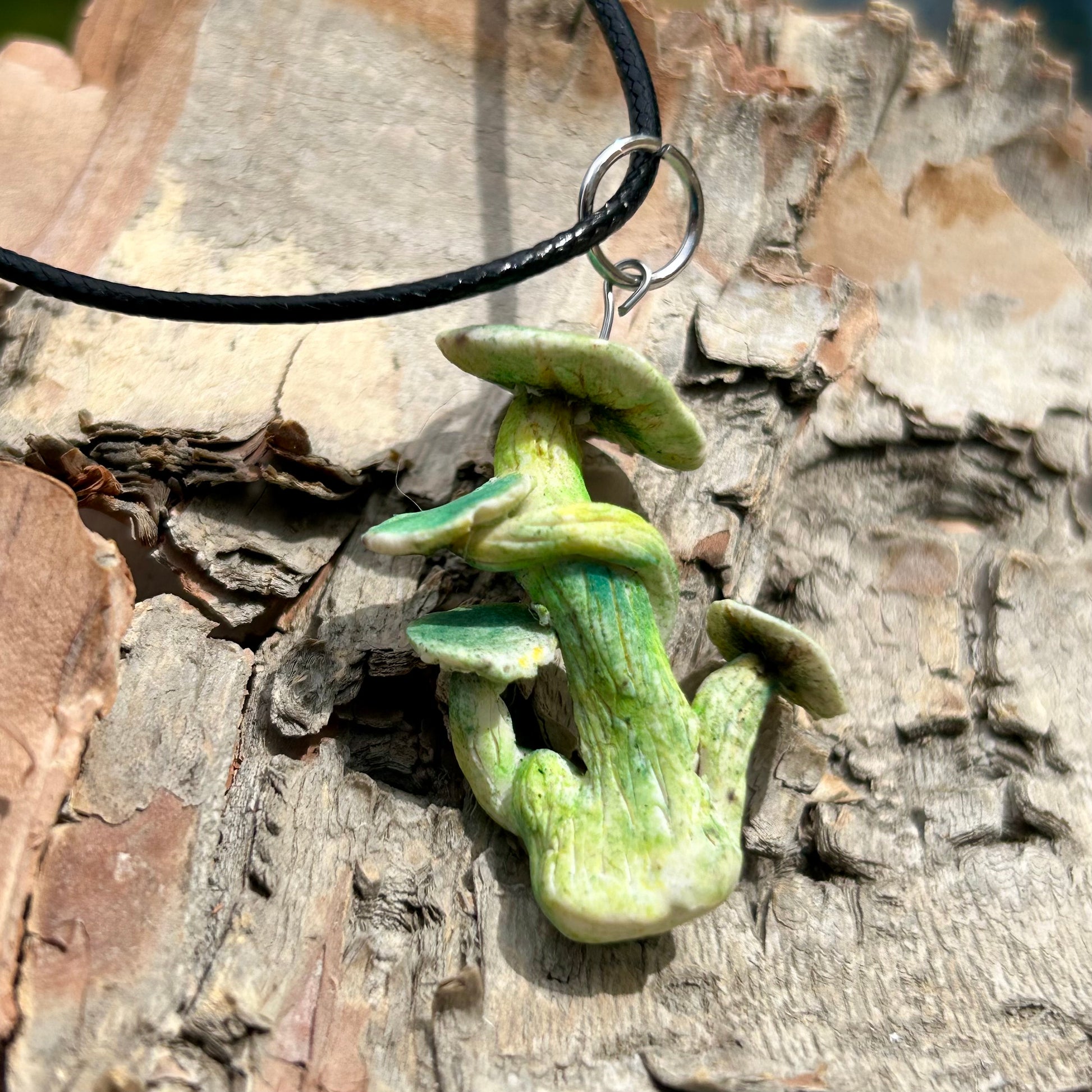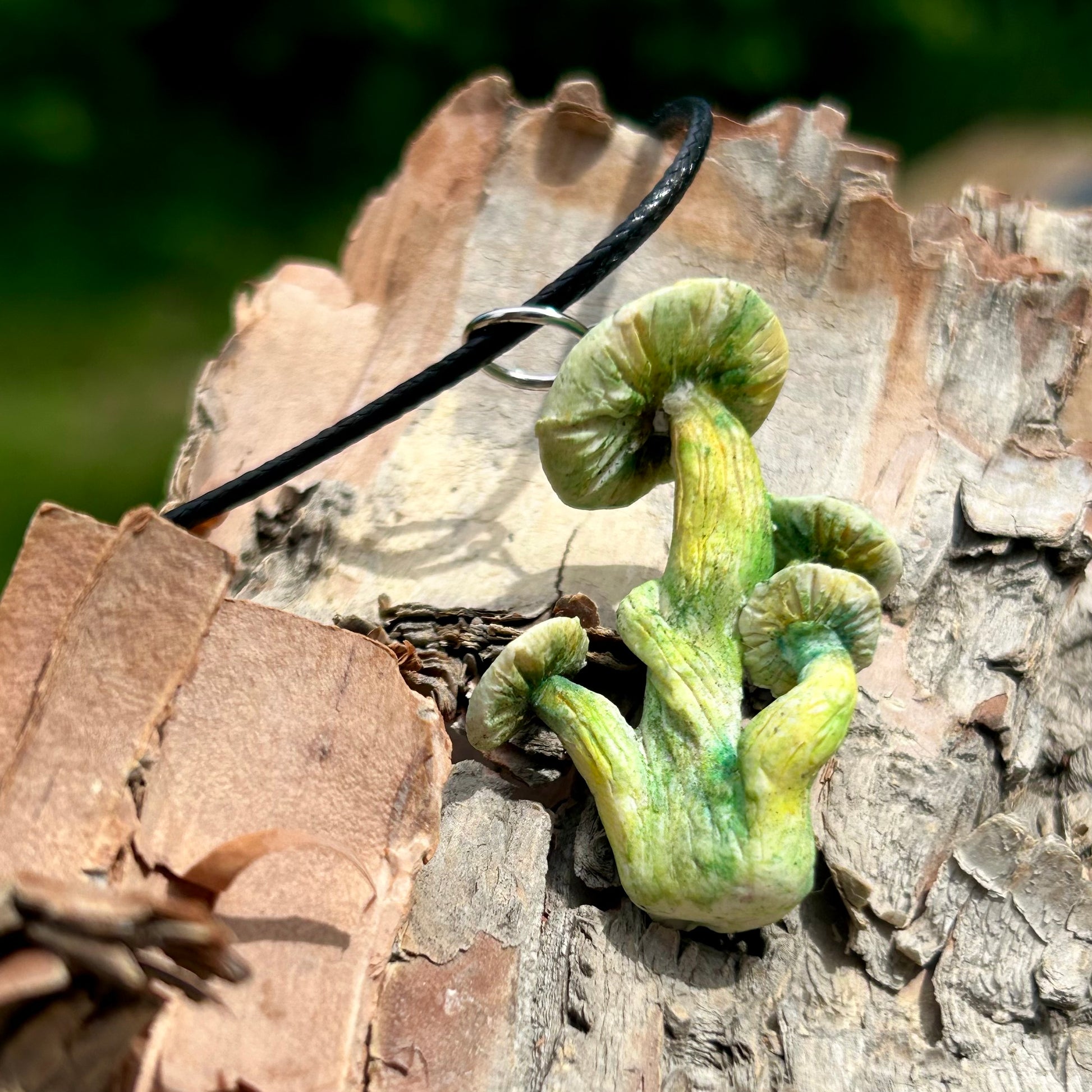 This fantasy-inspired pendant is sculpted from polymer clay and detailed with chalk pastels.
