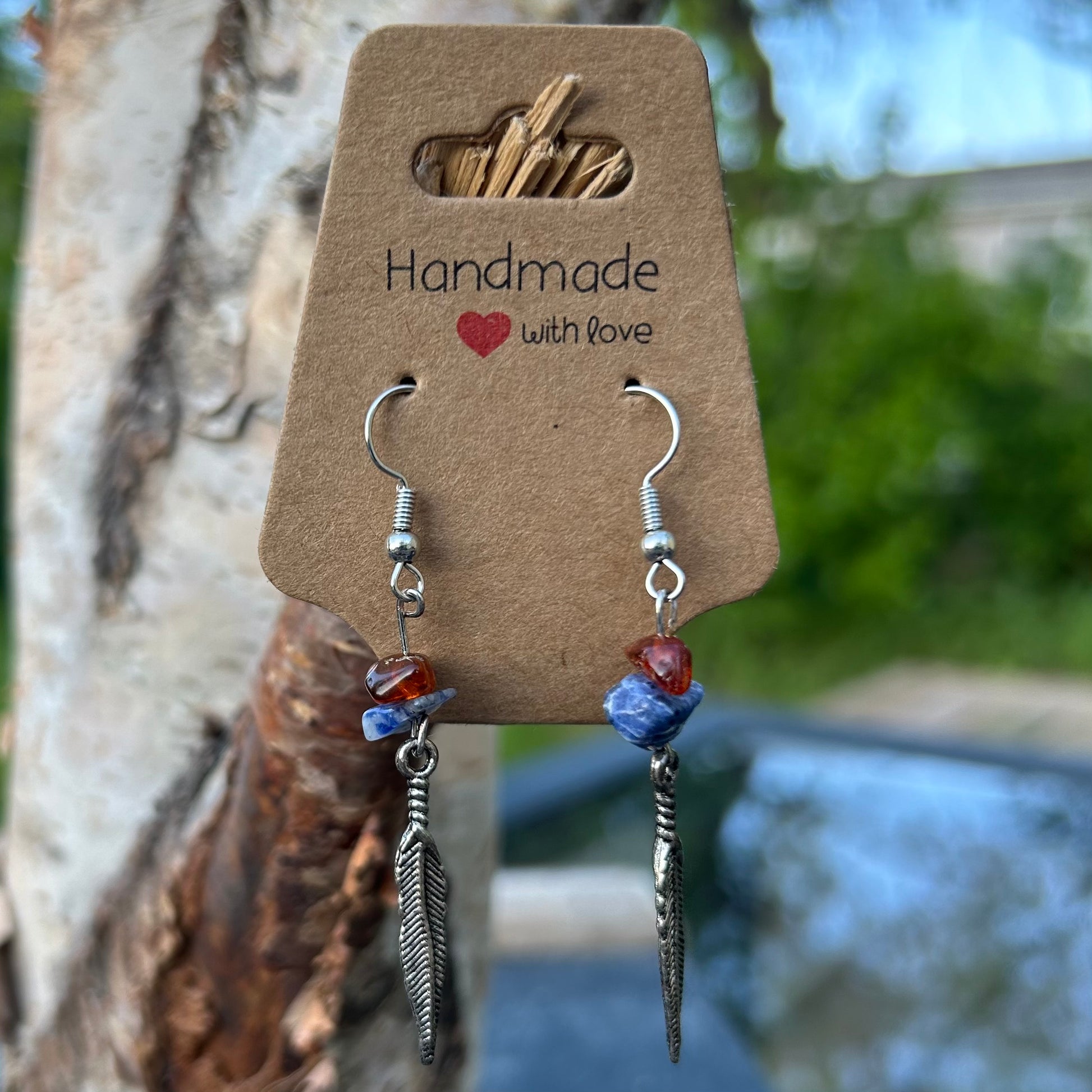 If air is your element or you love birds these "charm"ing gemstone chip earrings are right for you. We can make alterations to the colour of earring hook and also customize the stones for you. Just send a message on either instagram @mothsqueercreations or email us at crystalqueercollective@outlook.com and we will do our best to custom make the type you need