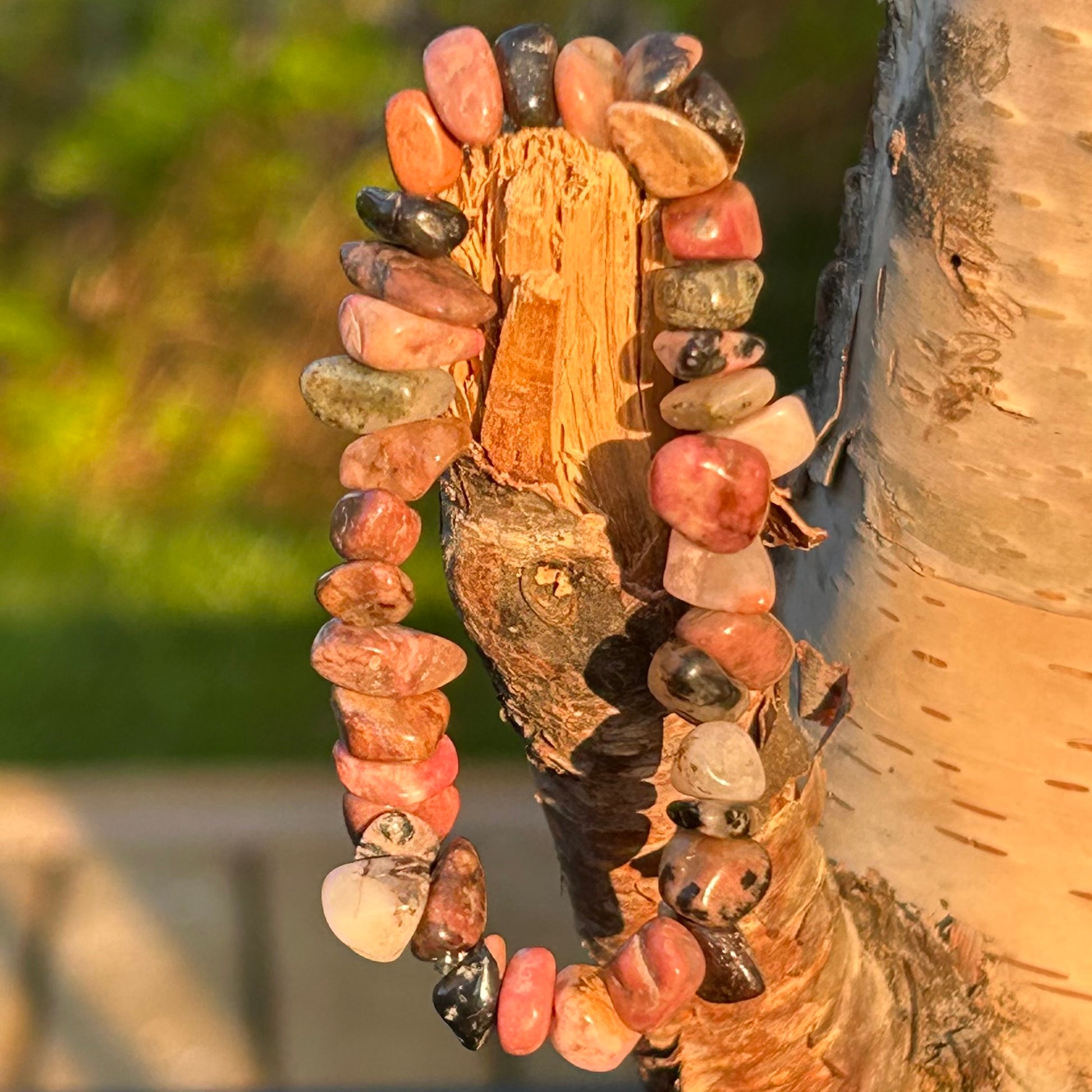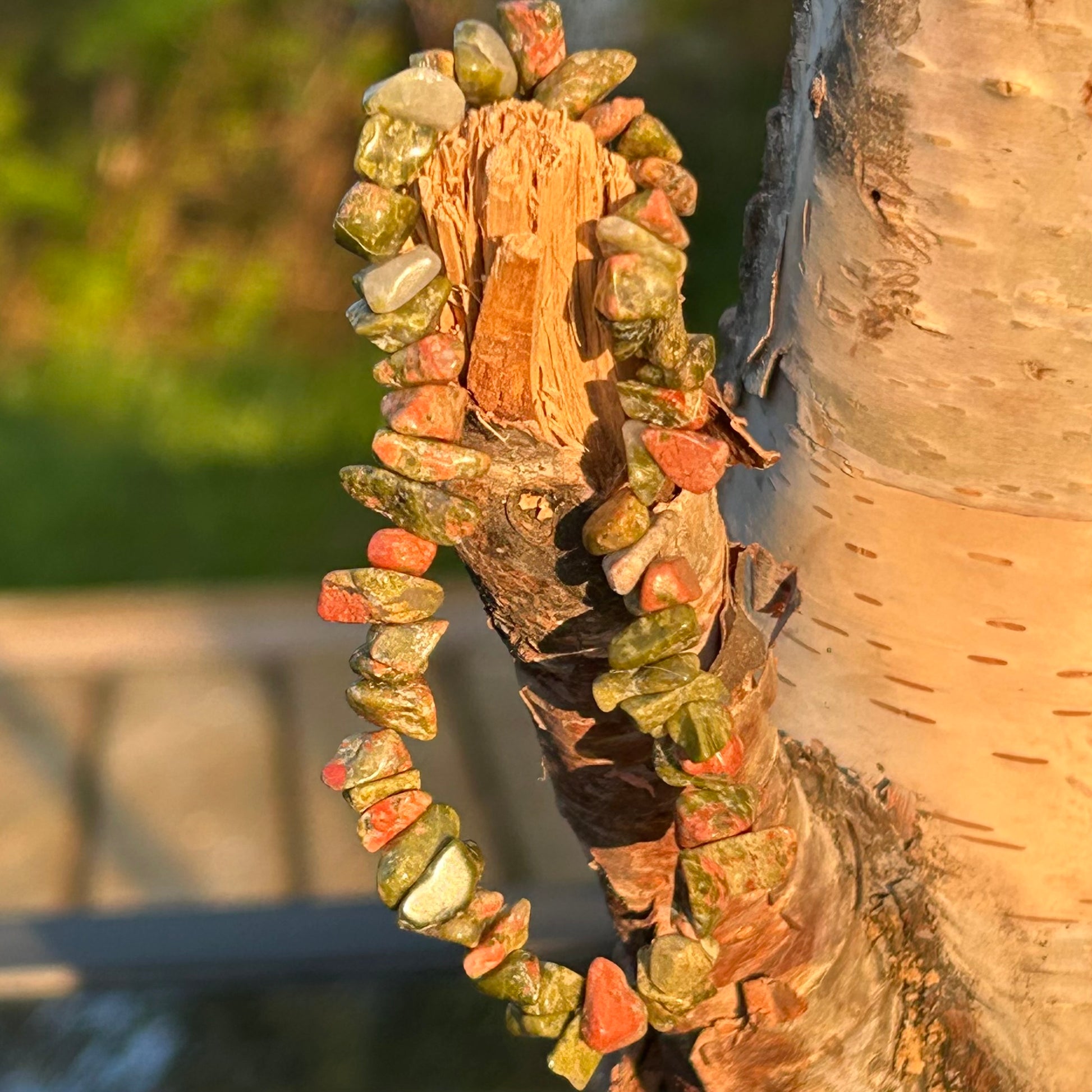 Take your favourite gemstone with you with these beautiful handmade gemstone chip & sphere bracelets on stretchy cord. They provide you with a style and magic for every occasion.