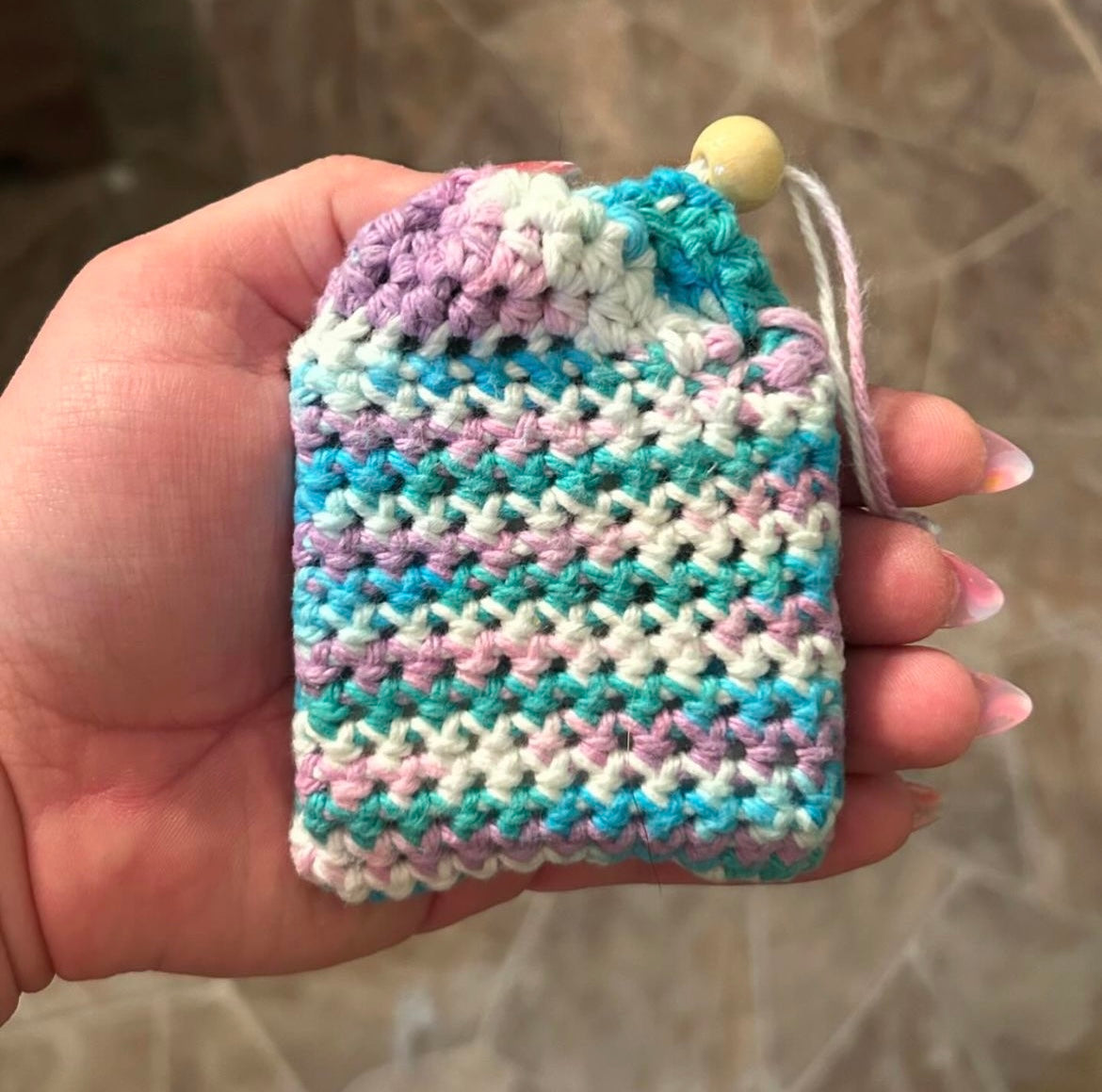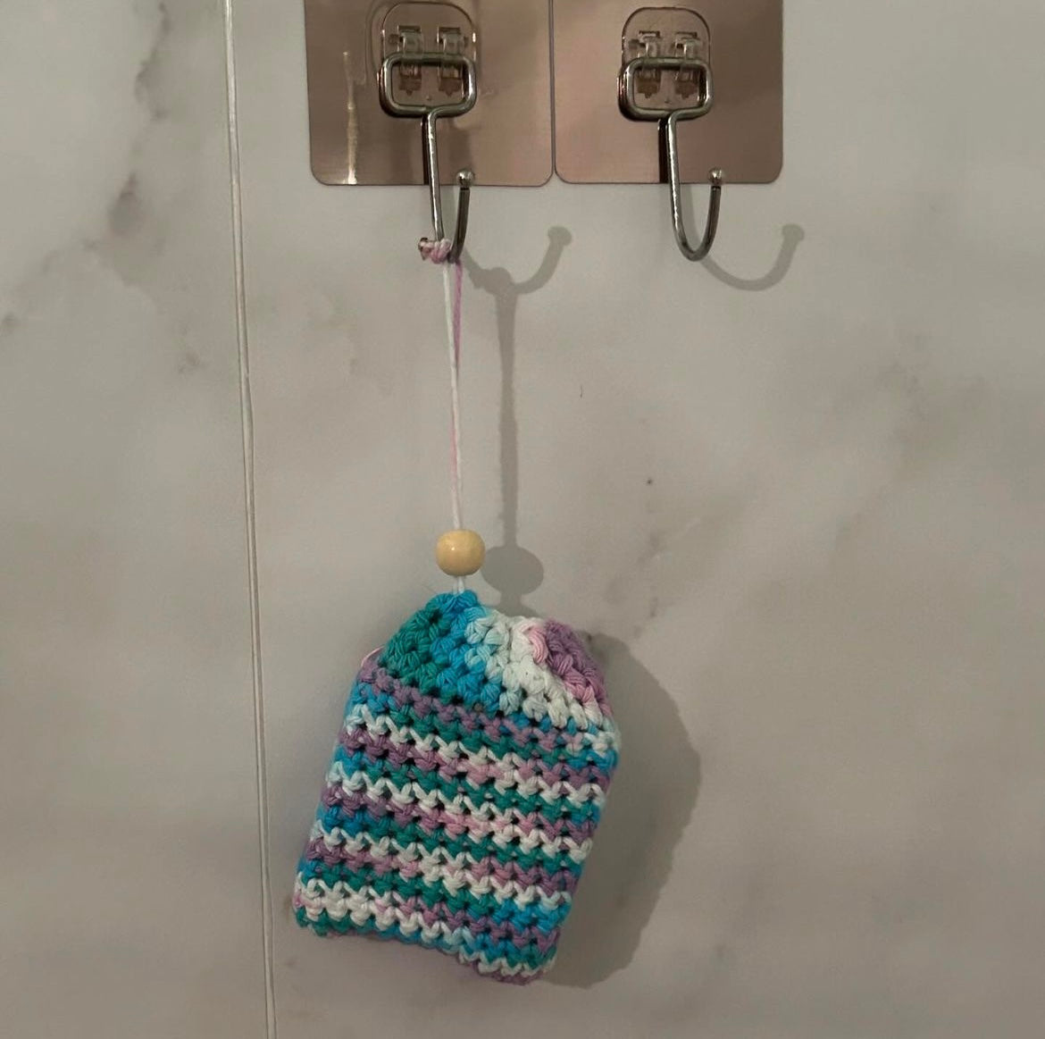 * I suggest to put this soap saver into a mesh bag if you are going to wash it in the machine to make sure it doesn't get caught on the machine itself or get snagged on a piece of clothing. If you are going to wash by hand I would use a baby detergent to make it easier on your hand but any way you would normally hand wash should be fine. Regardless of the way you choose to wash your bag I would hang dry it to make sure it doesn't shrink and will continue to be a useful and pretty addition to your bathroom.